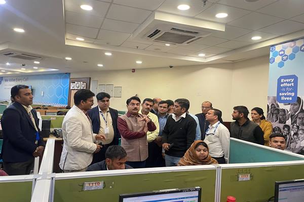 लोक स्वास्थ्य एवं चिकित्सा शिक्षा राज्य मंत्री श्री नरेन्द्र शिवाजी पटेल ने शुक्रवार को 108 कॉल सेंटर का निरीक्षण किया। राज्य मंत्री ने एकीकृत रेफेरल परिवहन प्रणाली (आईआरटीएस) को समझा। उन्होंने कहा कि स्वास्थ्य सेवाओं को सुलभ और उत्कृष्ट बनाने के लिए सरकार निरन्तर कार्य कर रही है। श्री पटेल ने सेंटर में कार्यरत कर्मचारियों का उत्साहवर्धन किया और कहा कि आने वाले कॉल पर पूर्ण संवेदनशीलता से चर्चा कर सेवाओं के प्रदाय में सहयोग प्रदान करें।